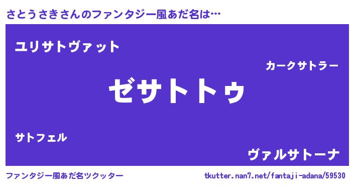| 男性向けラノベタイトル風あだ名 | 『さとうさきに滅ぼされるだけの簡単なお仕事です』 |