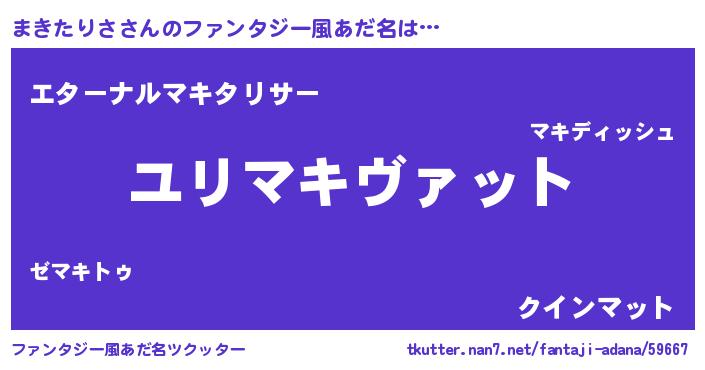 | 男性向けラノベタイトル風あだ名 | 『転生したらまきたりさだった件』 |