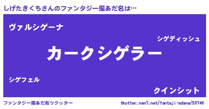 | 意味不明あだ名 | 『住所不定無職しげたきくち(62歳)』 |