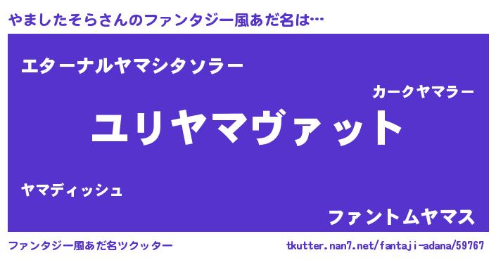 | 男性向けラノベタイトル風あだ名 | 『やましたそら~年齢イコール彼女いない歴の魔法使い~』 |