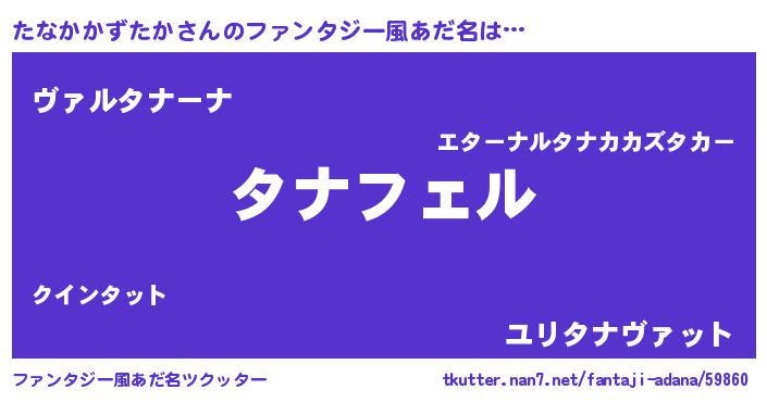 | 女子向けラノベタイトル風あだ名 | 『(仮)たなかかずたかのやんごとなき事情』 |