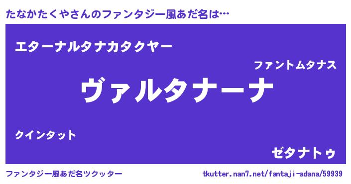 | ヒーロー風カッコイイあだ名 | 『仮面タナダー』『最強戦士タナカタクヤ』 |