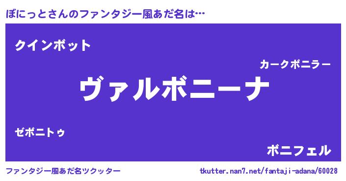 | 胡散臭い通販商品みたいなあだ名 | 『あなたにだけ特別に提供する100年もののヴィンテージワイン…その名も「ぼにっと」』 |