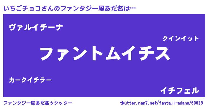 | 男性向けラノベタイトル風あだ名 | 『いちごチョコの嫁は女の子じゃないと思った?』 |