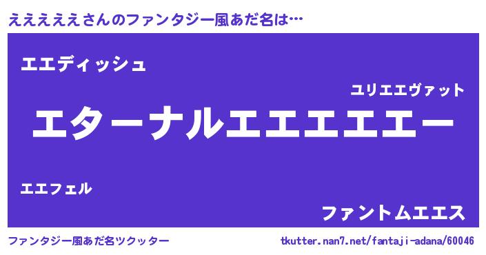 | 男性向けラノベタイトル風あだ名 | 『えええええに滅ぼされるだけの簡単なお仕事です』 |