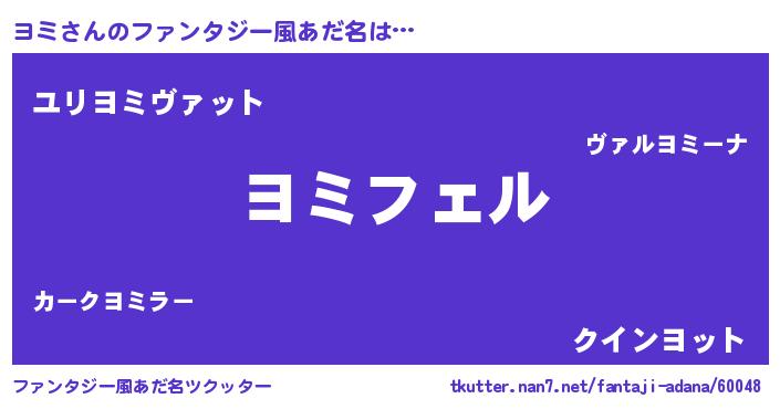 | ヘコむあだ名 | 『ヨミっふぃ~』『ヨミお』 |