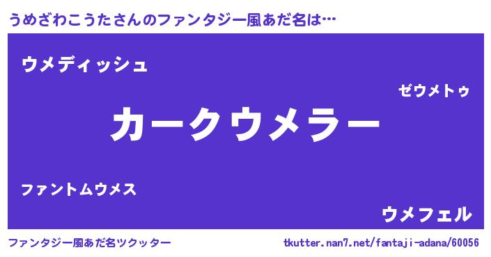 | ヒーロー風カッコイイあだ名 | 『ネオウメザワコウタ』『暗黒騎士ウメ』 |