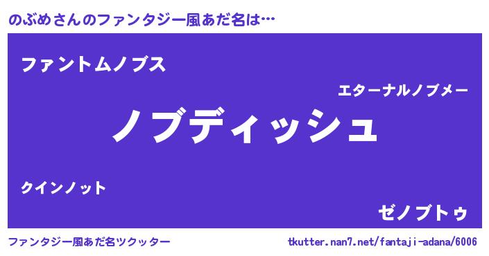 | 女子向けラノベタイトル風あだ名 | 『のぶめの契約王妃』『のぶめ様がみてる』 |