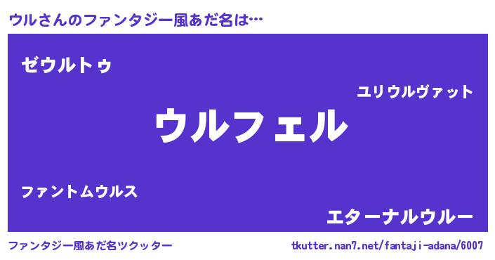 | ヒーロー風カッコイイあだ名 | 『スーパーウル』『超時空戦士ウル』 |