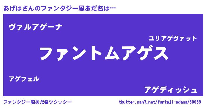 | ポケモン風あだ名 | 『ヒアゲハ』『アーゲイ』『ゼニアゲ』 |