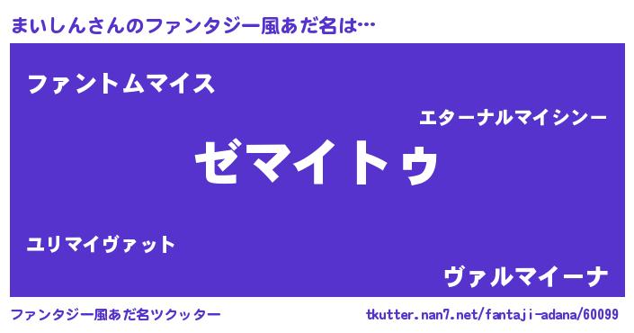 | ヒーロー風カッコイイあだ名 | 『ウルトラ戦士マイシン』『天弓騎士マイ』 |