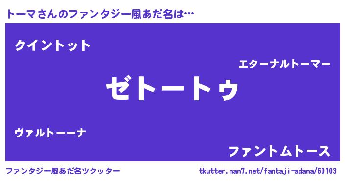 | ヒーロー風カッコイイあだ名 | 『最強戦士トーマ』『愛の使者トーマ』 |