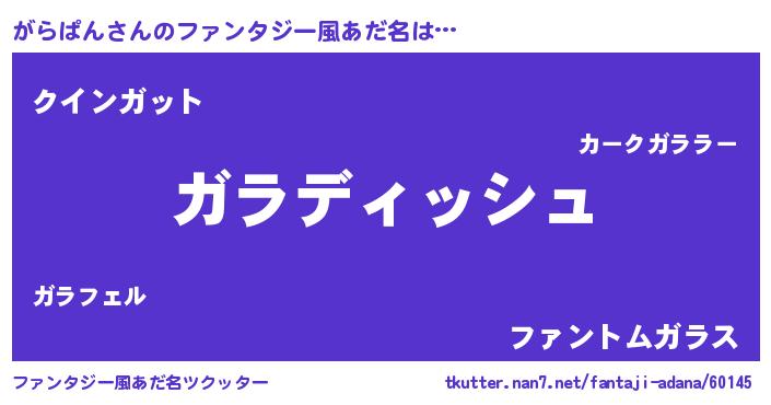 | ヒーロー風カッコイイあだ名 | 『ネオガラパン』『愛の使者がらぱん』 |