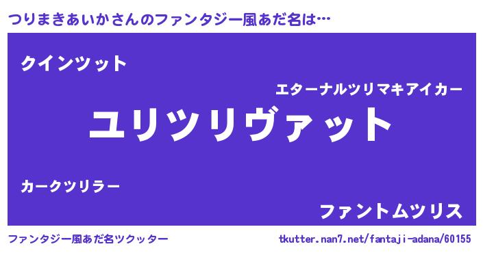 | 欧米人風あだ名 | 『トリンドルつりまきあいか』 |