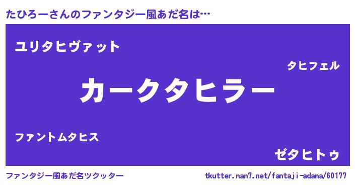 | ヒーロー風カッコイイあだ名 | 『ウルトラ戦士タヒロー』『魔戒騎士タヒ』 |