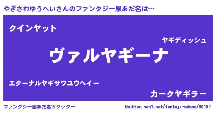 | 男性向けラノベタイトル風あだ名 | 『この素晴らしい世界にやぎさわゆうへいを!』 |