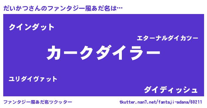 | ヘコむあだ名 | 『だいかつ(苦笑)』『牛乳』『だいを』 |