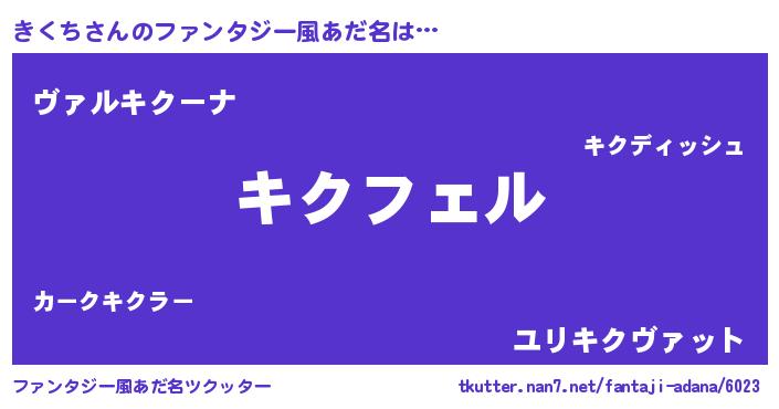 | 男性向けラノベタイトル風あだ名 | 『きくちの憂鬱』『キクチスレイヤー』 |