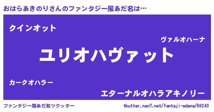 | 料理風あだ名 | 『おはらあきのりごはん』 |