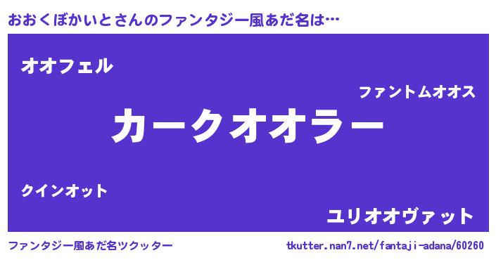 | 男性向けラノベタイトル風あだ名 | 『おおくぼかいとに滅ぼされるだけの簡単なお仕事です』 |