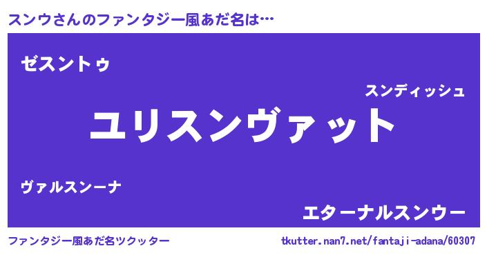 | 意味不明あだ名 | 『めかぶ科スンウ属』『自称スンウ』 |