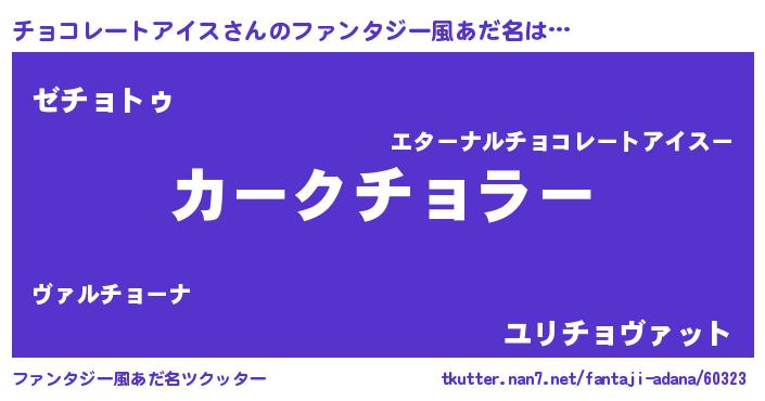 | 料理風あだ名 | 『チョコレートアイスの炊き込みご飯』 |