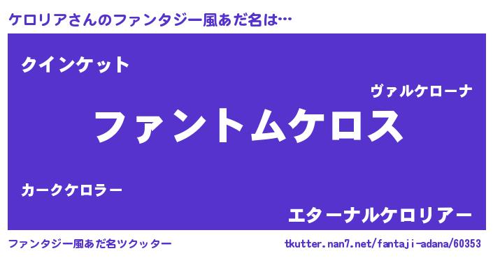 | ヒーロー風カッコイイあだ名 | 『暗黒騎士ケロ』『愛の使者ケロリア』 |