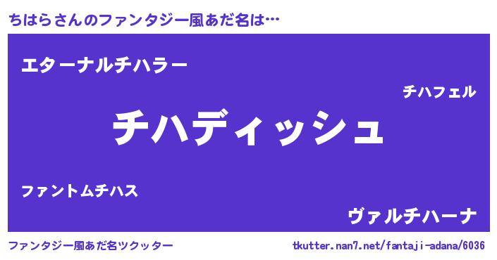 | 男性向けラノベタイトル風あだ名 | 『ちはらという概念が存在しない退屈な世界 』 |