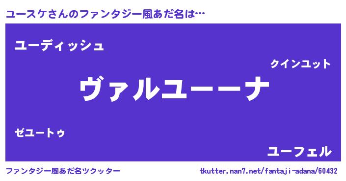 | 女子向けラノベタイトル風あだ名 | 『乙女ゲームの破滅フラグしかない悪役ユースケに転生してしまった…』 |