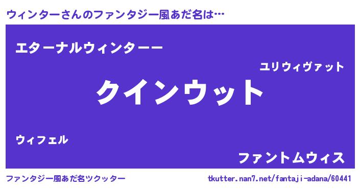 | 男性向けラノベタイトル風あだ名 | 『おまえをオタクにしてやるから、俺をウィンターにしてくれ! 』 |