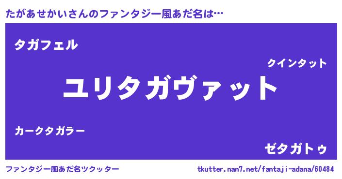 | 男性向けラノベタイトル風あだ名 | 『たがあせかい~年齢イコール彼女いない歴の魔法使い~』 |