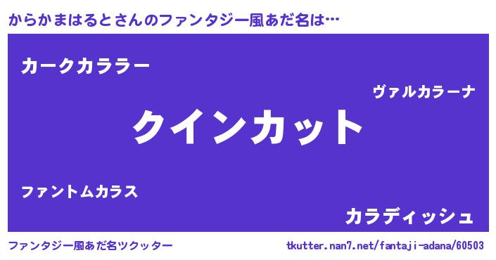 | 男性向けラノベタイトル風あだ名 | 『ノーゲーム・ノーカラカマハルト』 |