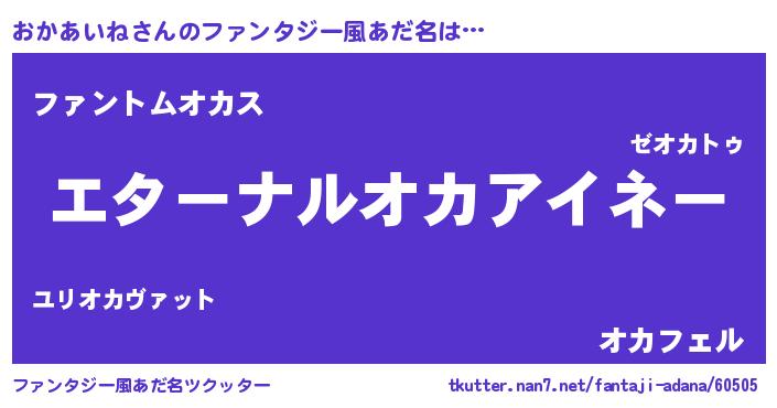 | 意味不明あだ名 | 『おかあいねフォーエバー』 |