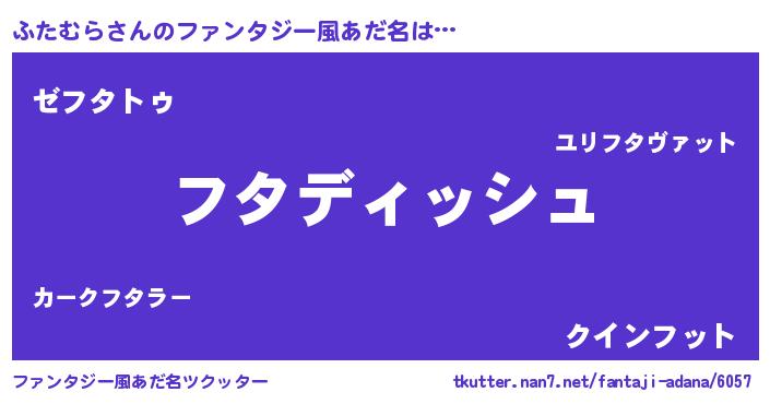 | 男性向けラノベタイトル風あだ名 | 『ふたむらという概念が存在しない退屈な世界 』 |