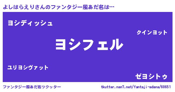 | ヘコむあだ名 | 『よしっふぃ~』『よしはらえり(小並感)』 |