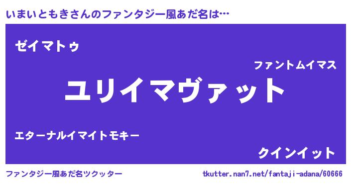| ヒーロー風カッコイイあだ名 | 『究極戦士イマイトモキ』『幻影騎士イマ』 |