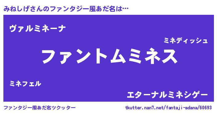 | 男性向けラノベタイトル風あだ名 | 『みねしげの嫁は女の子じゃないと思った?』 |