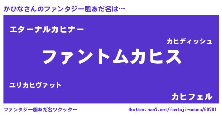 | ヒーロー風カッコイイあだ名 | 『幻影騎士カヒ』『ウルトラかひなマン』 |