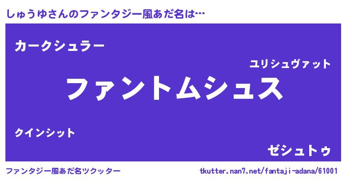 | ヒーロー風カッコイイあだ名 | 『天弓騎士シュ』『究極戦士シュウユ』 |