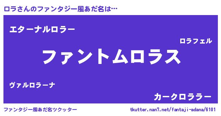 | 女子向けラノベタイトル風あだ名 | 『ロラ様がみてる』『ロラ伯爵の花嫁』 |