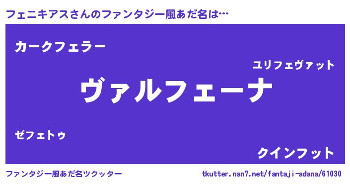 | 男性向けラノベタイトル風あだ名 | 『この素晴らしい世界にフェニキアスを!』 |