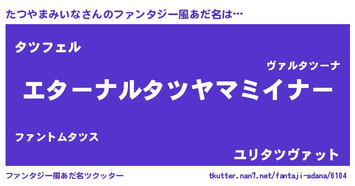 | 欧米人風あだ名 | 『たつやまみいなクリステル』 |