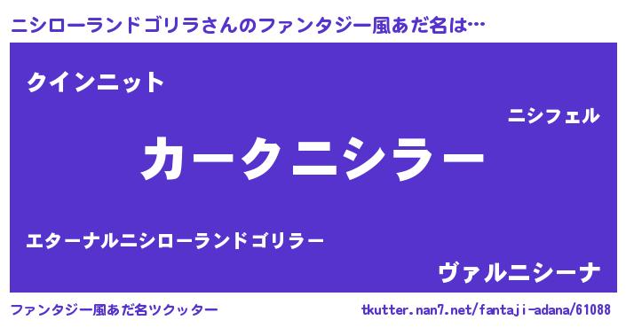 | ヒーロー風カッコイイあだ名 | 『慈愛の使者ニシローランドゴリラ』 |