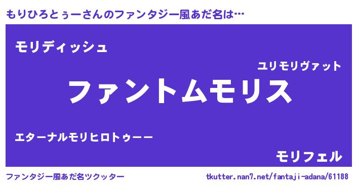| 男性向けラノベタイトル風あだ名 | 『もりひろとぅーの嫁は女の子じゃないと思った?』 |