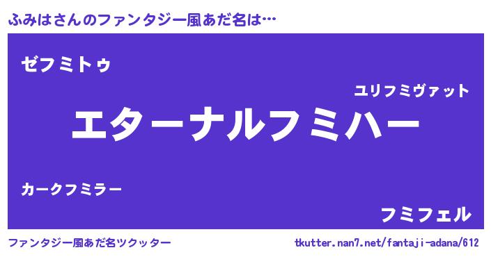 | 意味不明あだ名 | 『ふみはフォーエバー』『自称ふみは』 |
