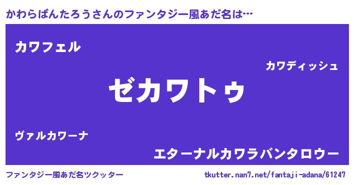 | ヒーロー風カッコイイあだ名 | 『超時空戦士カワラバンタロウ』 |