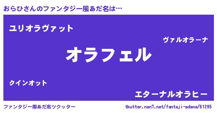 | 女子向けラノベタイトル風あだ名 | 『おらひ姫と円卓の騎士』 |