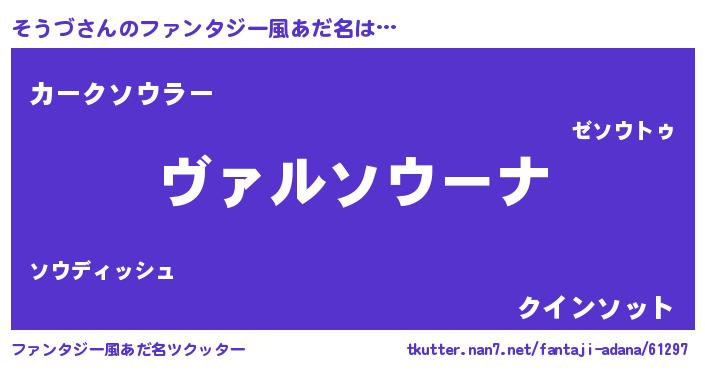 | 男性向けラノベタイトル風あだ名 | 『魔弾の王とそうづ』 |