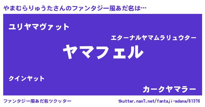 | ヒーロー風カッコイイあだ名 | 『スーパーヤマムラリュウタ』 |