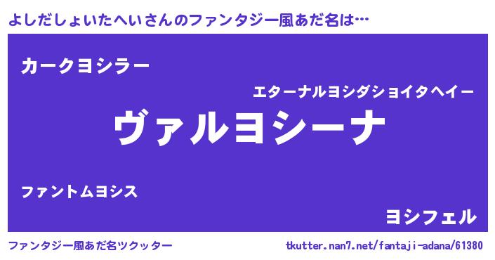 | 欧米人風あだ名 | 『ダレノガレよしだしょいたへい』 |